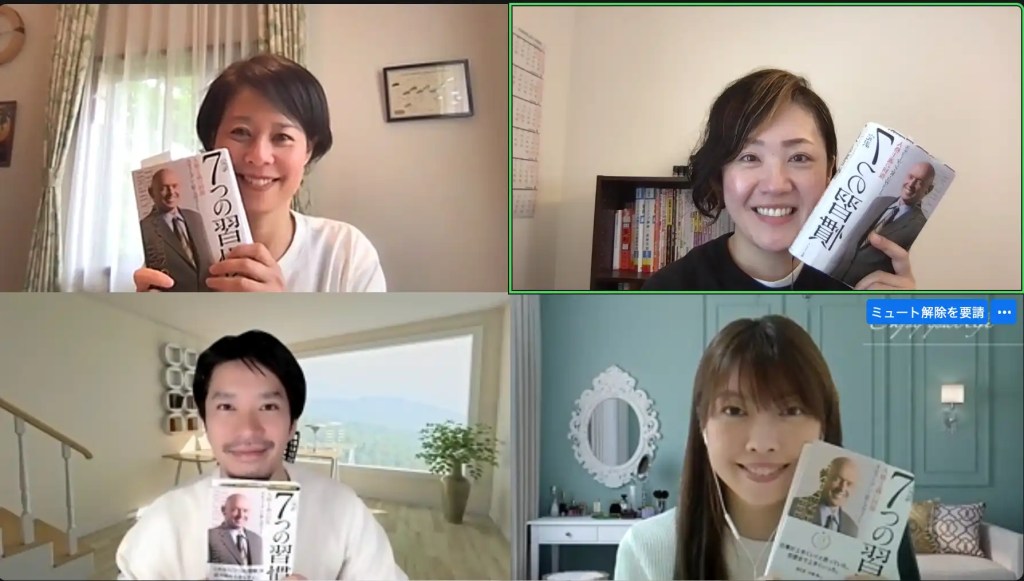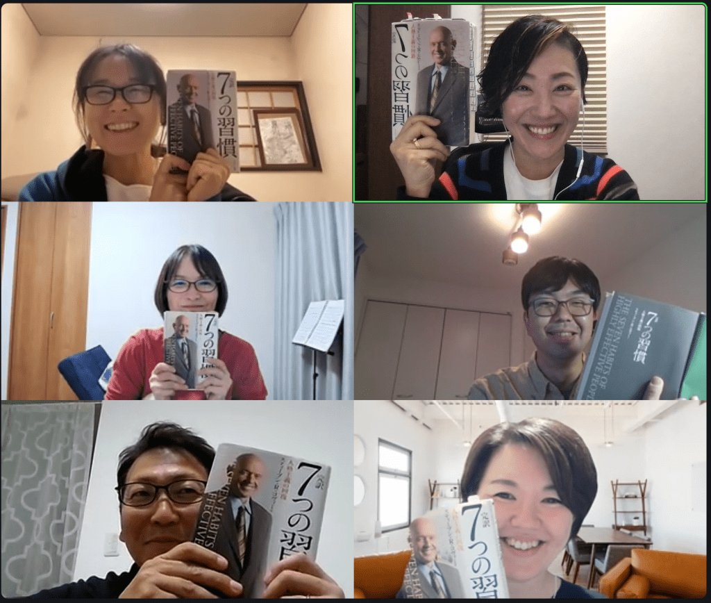 この「7つの習慣」を通して、自分がどうなりたいかしっかり対峙することができたと思います。また、こ れまでの自分の人生によい影響を与えてくれた人のあり方が、自分の軸の形成につながっているということ がわかりました。そして辛かった時に誰かに助けられた経験が、また未来への誰かの助けになるという学び がありました。最後に、必ずしも相手が見ている景色が自分のものと同じとは限らないということを知るこ とができました。「7つの習慣」をその場で読みながら、こさとさんがかみ砕いて説明してくれるので、非常にわかりやすく内容が入ってきます。本を読んでの気づきや、ワークのシェアを通して、自分とは違う視 点から物事を見ることができたり、そこから自分の考えを深めることができました。